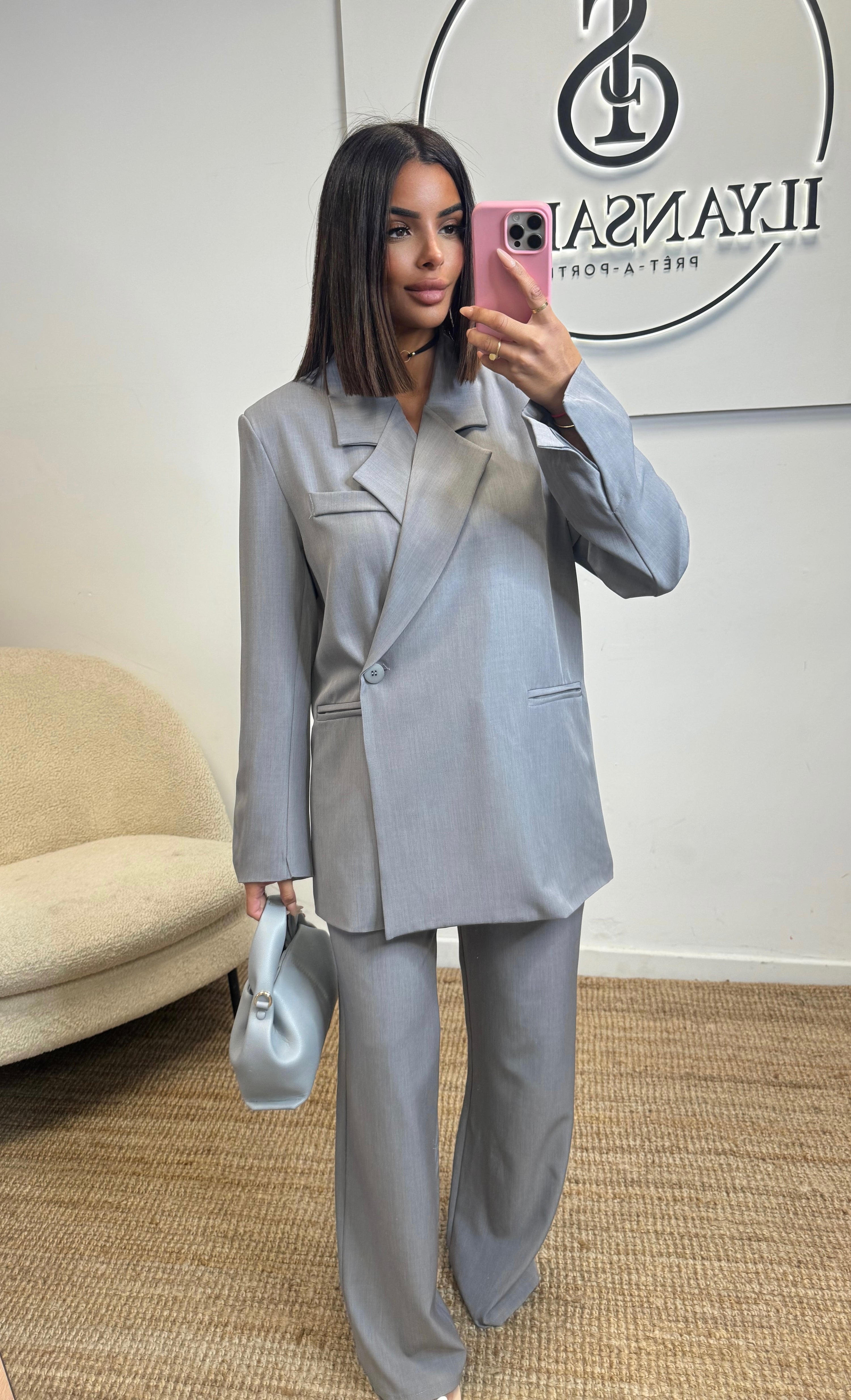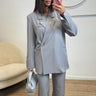 Cet ensemble Dora gris en polyester et élasthanne à taille unique offre un look chic et confortable. Le blazer et le pantalon assortis ajoutent une touche de sophistication à toute tenue. Avec une composition de 95% polyester et 5% élasthanne, cet ensemble est à la fois élégant et extensible pour une coupe parfaite.