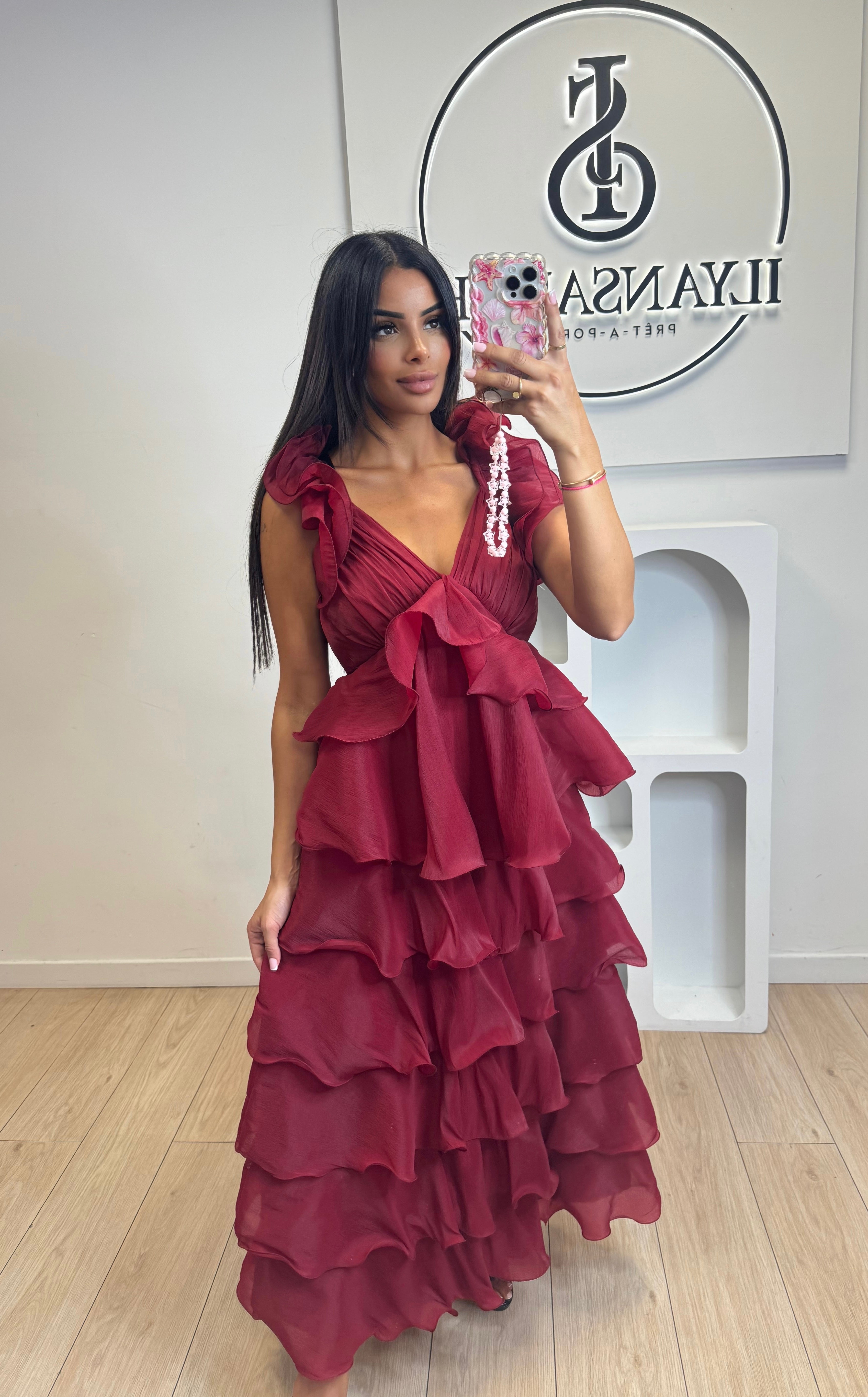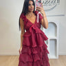 La robe Mona est une robe longue bordeaux avec des volants, fabriquée en 100% polyester pour un confort et une durabilité supérieurs. Ses motifs lumineux et sa coupe flatteuse en font la pièce parfaite pour toutes les occasions. Disponible en taille sm.